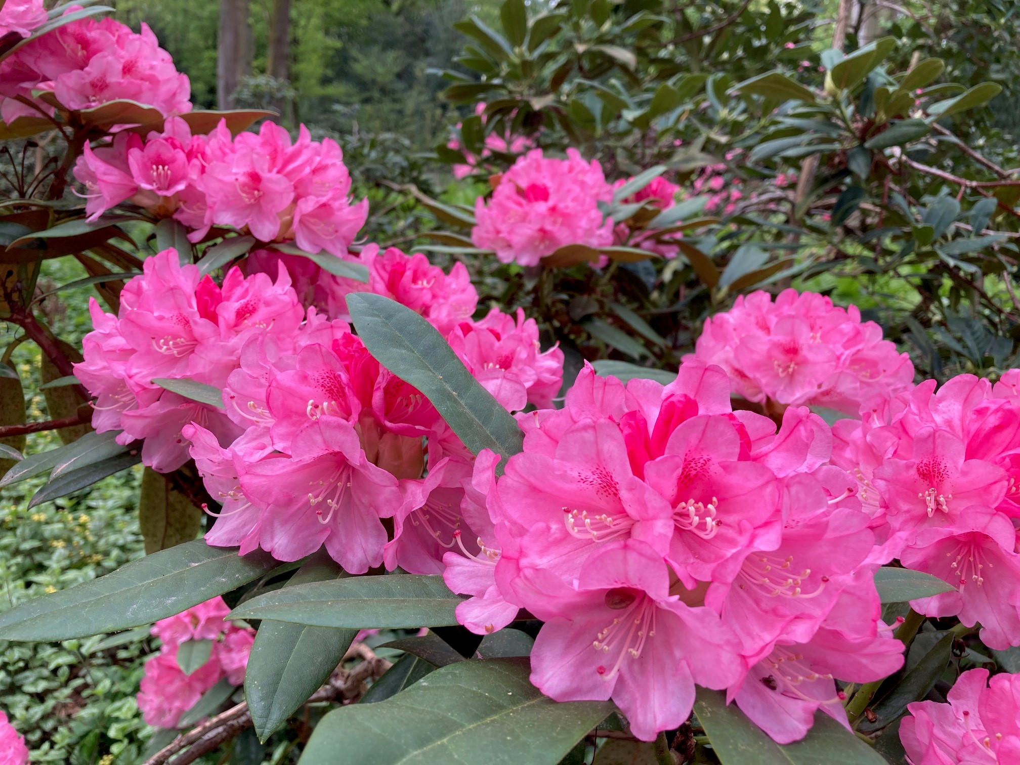 Die ersten Blüten strahlen: Das April-Wetter kann die Farbenpracht nicht stoppen: Die ersten Rhododendren am Rande des Bad Sassendorfer Kurparks blühen. Schon jetzt ist die Farbenvielfalt ein Hingucker, der sich in den nächsten Tagen sicherlich zu einem Frühlings-Highlight entwickeln wird: Anfang Mai verspricht der Rhododendron-Park besondere Farbenwelt.